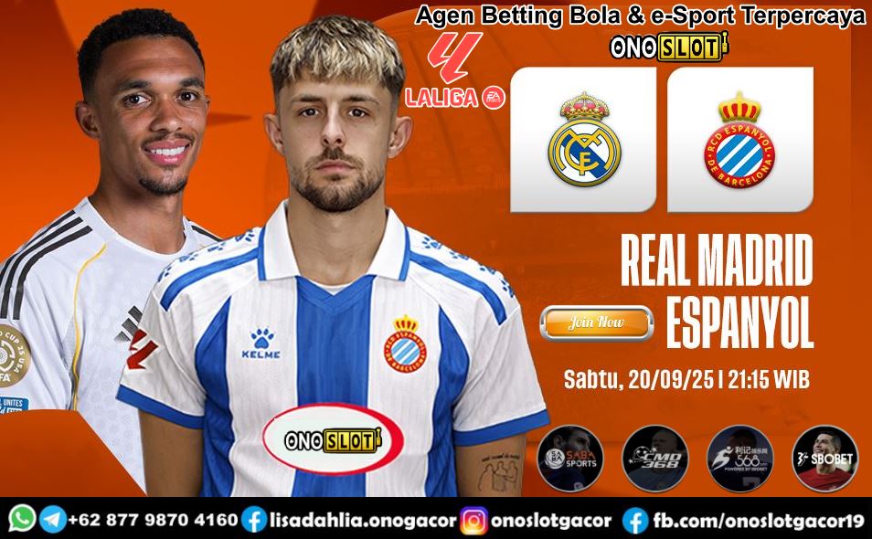 PREDIKSI BOLA JITU ItuGacor-Real Madrid dan Espanyol akan berjumpa pada pekan ke-5 La Liga 2025/2026. Pertandingan Liga Spanyol antara Real Madrid vs Espanyol ini dimainkan di Santiago Bernabeu. Pertandingannya akan kick-off Sabtu, 20 September 2025, jam 21.15 WIB, live streaming di Vidio.