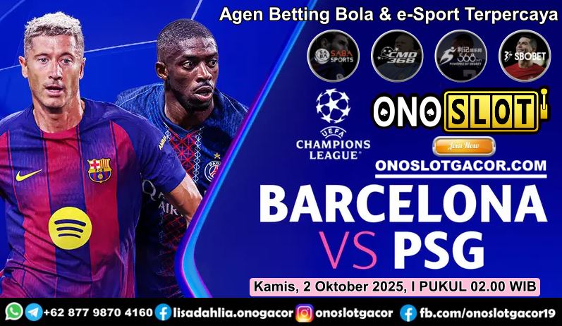 PREDIKSI BOLA JITU ItuGacor-Barcelona dan PSG akan berjumpa pada matchday 2 league phase Liga Champions 2025/2026. Pertandingan fase liga UCL (UEFA Champions League) antara Barcelona vs PSG ini dimainkan di Estadi Olimpic Lluis Companys. Pertandingannya akan kick-off Kamis, 2 Oktober 2025, jam 02.00 WIB, live streaming di Vidio.