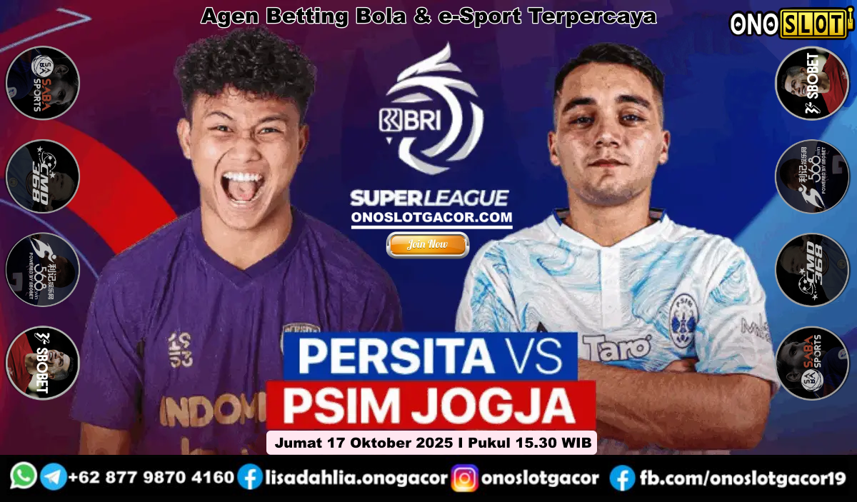 PREDIKSI BOLA JITU ItuGacor-Persita Tangerang menjamu PSIM Yogyakarta pada laga pekan ke-9 BRI Super League 2025/2026 di Indomilk Arena, Jumat 17 Oktober 2025. Laga Persita vs PSIM akan dimainkan mulai pukul 15.30 petang WIB, live di Indosiar dan Vidio.
