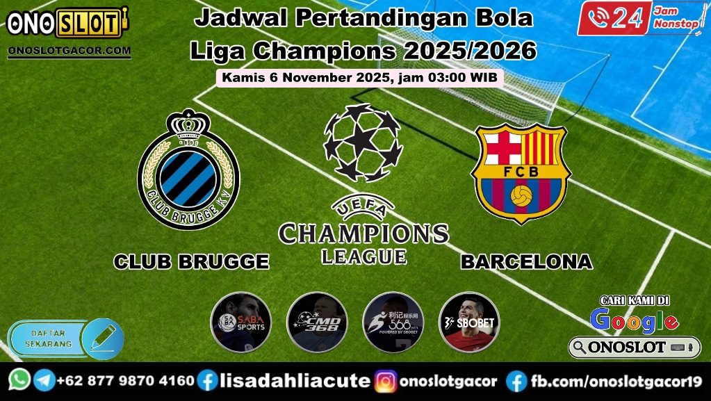 PREDIKSI BOLA JITU ItuGacor-Pertandingan Club Brugge vs Barcelona pada matchday 4 league phase Liga Champions 2025/2026 akan digelar di Jan Breydel Stadium. Pertandingan ini dijadwalkan kick-off Kamis, 6 November 2025, jam 03.00 WIB, live streaming di Vidio.