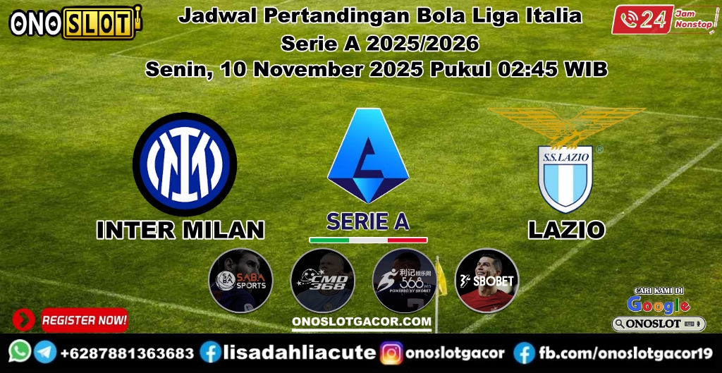 PREDIKSI BOLA JITU ItuGacor-Inter Milan akan menjamu Lazio di Giuseppe Meazza pada laga pekan ke-11 Serie A 2025/2026. Pertandingan Liga Italia ini dijadwalkan kick-off Senin 10 November 2025, jam 02.45 WIB, live streaming di Vidio.