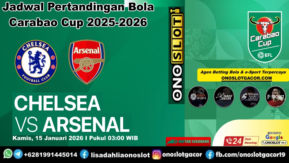 PREDIKSI BOLA JITU bandithoki-Pertandingan Chelsea vs Arsenal pada leg pertama babak semifinal Carabao Cup 2025-2026 akan digelar di Stamford Bridge. Pertandingan EFL Cup dengan tensi tinggi khas Derby London ini dijadwalkan kick-off Kamis, 15 Januari 2026, jam 03.00 WIB, live streaming di Vidio.