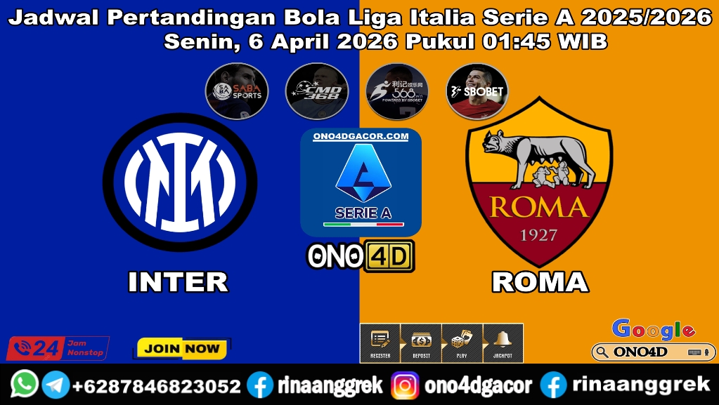 PREDIKSI BOLA bandithoki–Pertandingan Inter vs Roma pada pekan ke-31 Serie A 2025-2026 akan digelar di Stadio Giuseppe Meazza/San Siro. Pertandingan Liga Italia ini dijadwalkan kick-off Senin, 6 April 2026, jam 01.45 WIB, live streaming di Vidio.