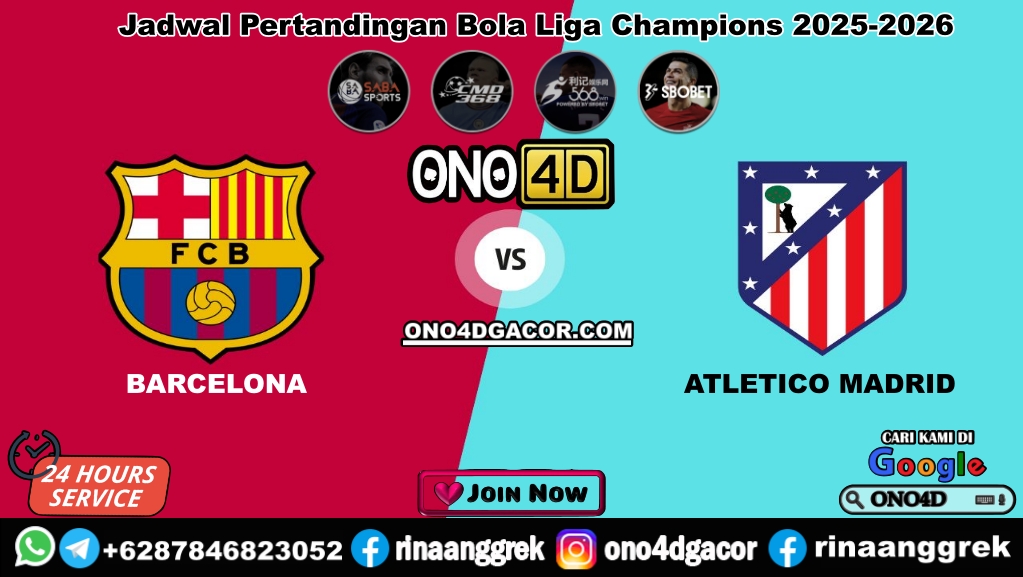 PREDIKSI BOLA bandithokiPertandingan Barcelona vs Atletico Madrid pada leg pertama babak 8 besar/perempat final Liga Champions 2025-2026 akan digelar di Camp Nou. Pertandingan UEFA Champions League (UCL) ini dijadwalkan kick-off Kamis, 9 April 2026, jam 02.00 WIB, live streaming di Vidio.