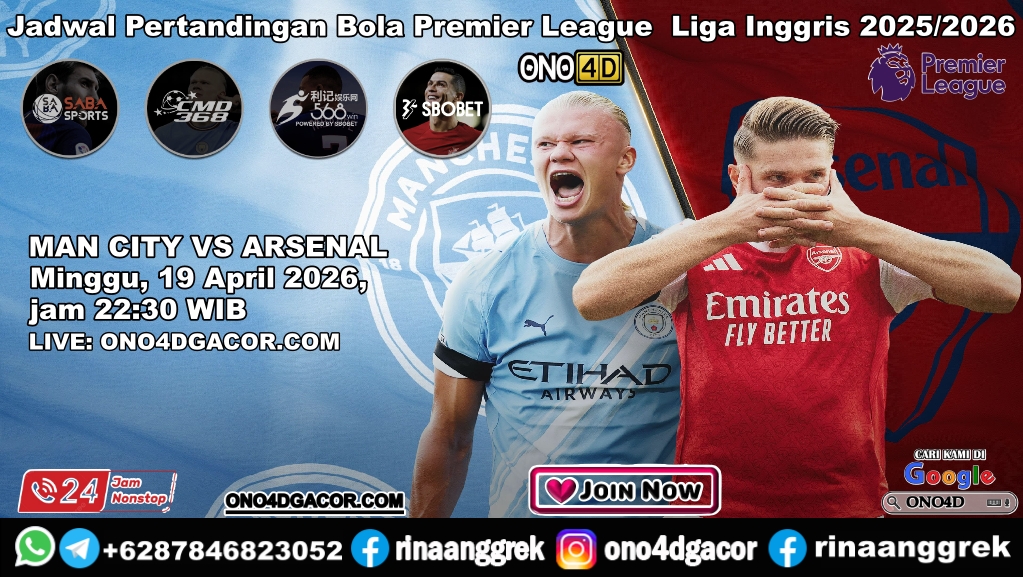 PREDIKSI BOLA bandithoki–Pertandingan Man City vs Arsenal pada pekan ke-33 Premier League 2025-2026 akan digelar di Etihad Stadium. Pertandingan Liga Inggris ini dijadwalkan kick-off Minggu, 19 April 2026, jam 22.30 WIB, live streaming di Vidio.